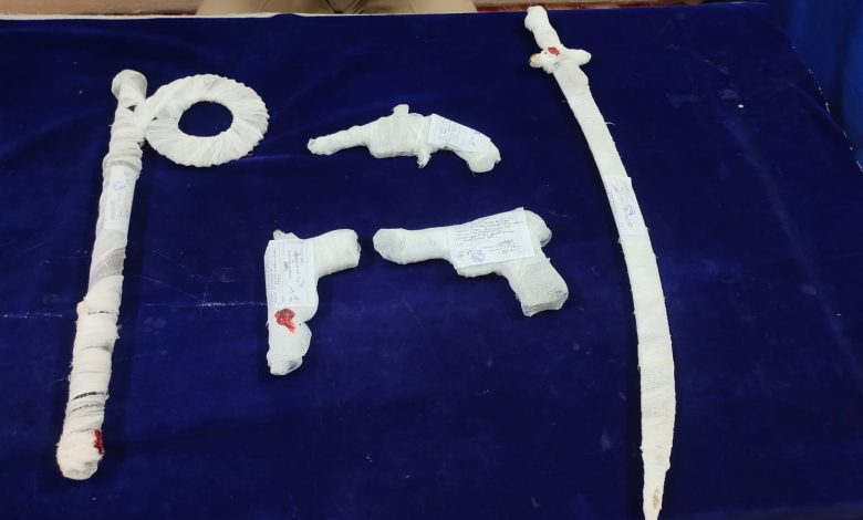 राजुरा:- राजुरा शहरातील सोमनाथपुर वार्डात काही लोकाकडे बिहार येथून घातक शस्त्र आणण्यात आल्याची राजुरा पोलिसांना माहिती मिळाली त्यावरून सोमनाथपुर वार्डातील तीन आरोपींना संशयास्पद म्हणनू ताब्यात घेऊन चौकशी केली त्यांच्या कबुली जबाबानुसार या तिन्ही आरोपीकडून देशी बनावटीचे पिस्टल, एक देशी कट्टा, एक स्टील तलवार एक चक्र असलेले घातक शस्त्र हा मुद्देमाल जप्त केला. याप्रकरणी आर्म एक्त नुसार गुन्हा नोंद झाला असून तिन्ही आरोपीला ताब्यात घेतले आहे.